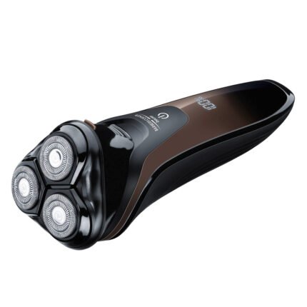 *Rotary Shaver *optimal contour fitting through 3 springloaded shaving heads *with additional 2 in 1 beard and sideburn styler * LED display with battery display, charge display as well as maintenance indicator