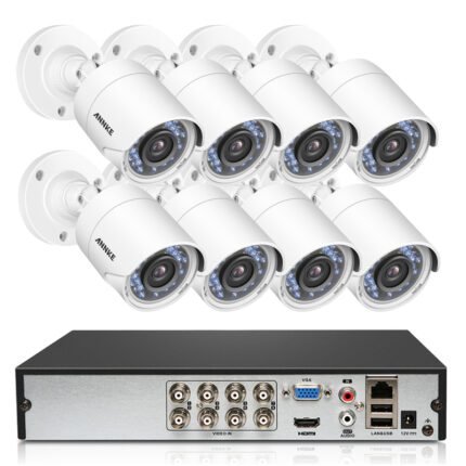 The ANNKE DT81DP DVR + Camera Set, paired with 8 CR1BL cameras, offers a comprehensive surveillance solution for residential and commercial security needs. With the DT81DP DVR supporting up to 8 camera channels, seamless monitoring and recording of high-definition video footage are assured. The CR1BL cameras, equipped with advanced features such as motion detection and night vision, ensure reliable surveillance coverage day and night. Easy to set up and operate, this set provides peace of mind by safeguarding your property with robust surveillance capabilities.ANNKE DVR + Camera Set DN81R+C51BT*8
