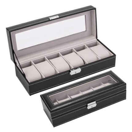 6 Slot Leather Watch Box Display Case