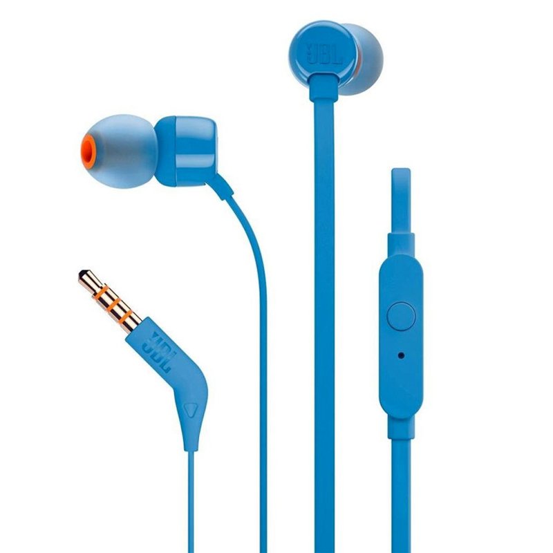 The TUNE110 in-ear headphones from JBL light, comfortable and compact. Two 9 mm speakers are located in the durable driver housing and generate the unmistakable Pure Bass sound from JBL, which you otherwise only know from large stages, concert halls and recording studios worldwide. Thanks to the one-button remote control with integrated microphone and the tangle-free ribbon cable, you can also easily control your music and answer incoming calls at any time. The JBL TUNE110 is your constant companion – at work, at home and on the move in the city.